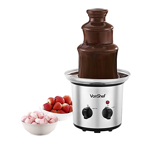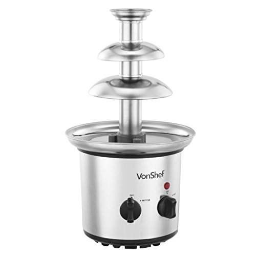 Choose what you wish to dip into the rich flow of chocolate: from fresh fruit, to marshmallows, cakepops, cookies or brownie pieces - the possibilities are endless! Why not create sweet "kebabs" using multiple ingredients on a skewer for you guests to experiment with? Dip and enjoy! Separate heat and motor controls allow you to keep chocolate warm and melted in base of unit whilst fountain is not in use.