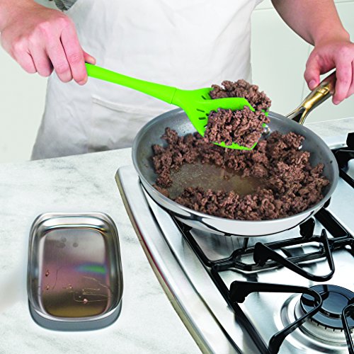 The Tovolo Ground Meat Tool is made of silicone and has a nylon handle for a comfortable grip and is ideal for chopping, draining and mixing your ground meat. This tool is made with perforated holes to drain the meat and also has an angled fin and a tapered edge that makes breaking up your ground meat effortless. This tool is Food Safe, BPA Free, dishwasher safe and heat resistant up to 400 Degrees Fahrenheit (204 Celsius) At Tovolo, we believe time spent cooking should be fun and we are honored to be a part of that experience in each home that uses our products. We challenge ourselves to improve the performance, function, and appearance of kitchen tools. Something as simple as a silicone spatula moves us to create the perfect experience for our customers. We obsess over every detail to ensure that our spatula will outperform expectations. However, performance alone is not enough; we want to put a smile on the customer’s face as well. Whether it is our Spatulart silicone spatulas, our assortment of frozen pop molds or our whimsically shaped ice molds, we strive to add a colorful element of fun to each of our items, to do just that. 0 |