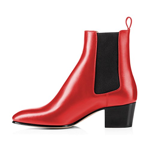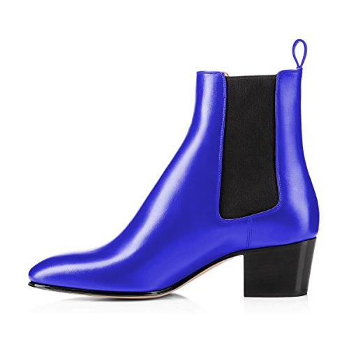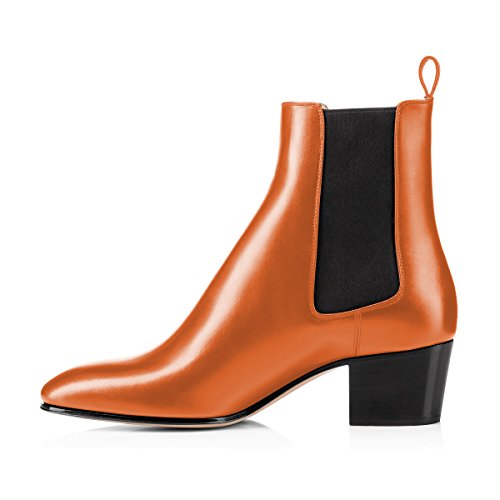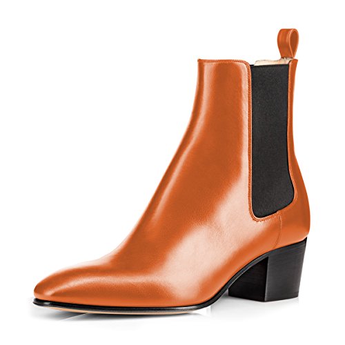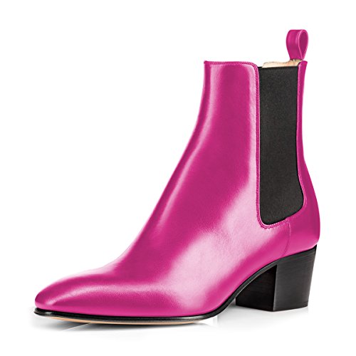 (FSJ)/Women's/Boots/DIRECT FROM USA/FSJ Women Elastic Closed Toe Chelsea Ankle Boots Stacked Low Heels Booties Side Panel Size 4-15 US