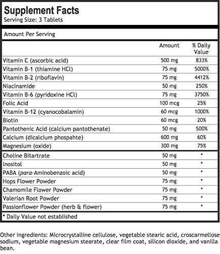 -. Feature : ENCOURAGE RELAXATION: Our Anti-Stress Supplement is a unique blend of vitamins, minerals, amino acids and herbs to help reduce mild anxiety and stress, without the side effects of harsh prescriptions drugs. All while improving long term well-being and happiness. calms, relaxes, and promotes a state of well-being without any harsh side effects or the feeling of drowsiness. Designed for everyday use without causing fatigue. / NATURAL SOLUTION - Formulated to support a state of natural calm, happiness, and well-being. Along with essential vitamins, Nature's Wellness Stress support supplement adds a complete blend of herbal ingredient for optimal results, including Choline, Inositol, PABA, Hops, Chamomile, Valerian, Passion flower. Combined, help reduce mild anxiety and stress, promote cognitive health, support a relaxed mood and improve long-term well-being and happiness. / STRESS B COMPLEX - B vitamins play a vital role in many bodily functions from metabolizing food to producing energy to keeping the heart and nervous system healthy. Stress B complex with herbal blend is a natural alternative to pharmaceutical anti depressant that helps to relax the mind & body and increases the serotonin levels in your brain to encourage a more positive mood, reduce stress, and counter the feelings of depression, anxiety, and tension. Read more about these ingredients below! / SAFE & EFFECTIVE - Don't compromise your health. Focused on purity and potency, Nature's Wellness products are MADE IN THE U.S.A in an FDA-registered facility and in accordance with Good Manufacturing Practices (GMP) and NSF certified facility, among the highest standards in the world. / WORRY-FREE MONEY BACK GUARANTEE - We have great P.R.Ide and confidence in our anti-stress formula that we have added our Guarantee to Amazon's Worry-Free Return Policy. If you don't feel more relaxed and anxiety-free after the first 30 days of use, we will issue you a full hassle-free refund and you can keep the bottle on us.