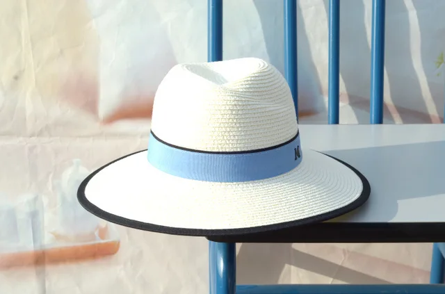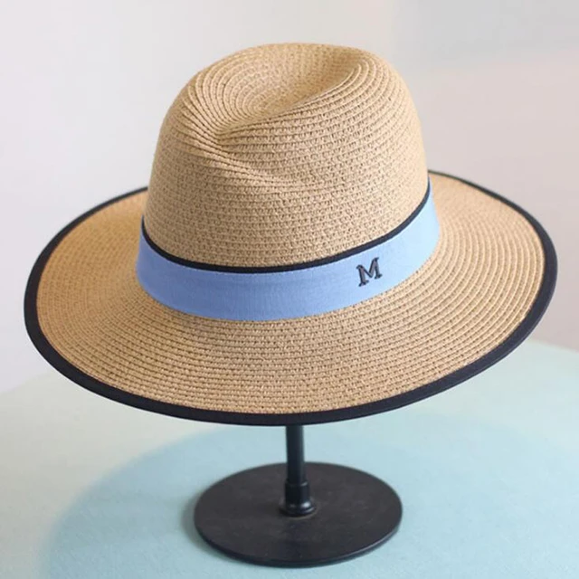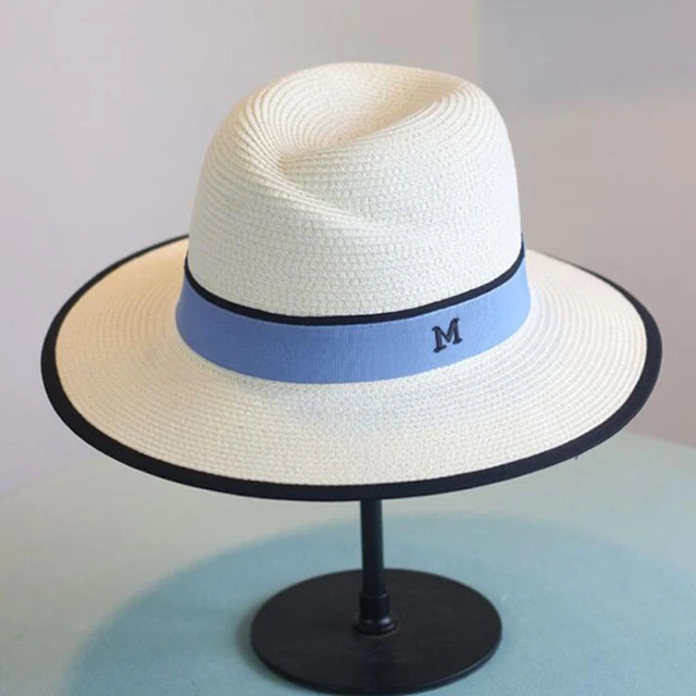 | [해외]새로운 도착 여름 패션 M 편지 밀짚 모자 큰 가장자리 M 파나마 밀짚 페도라 여성의 여행 비치 모자 태양 모자 |