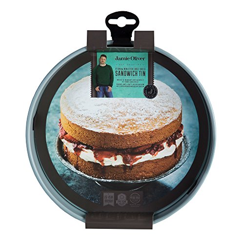 Studio : Jamie Oliver Publisher : Jamie Oliver Binding : Kitchen Product Description The Jamie Oliver 8 inch round sandwich tin features a non-stick straight wall design for perfect professional cakes without edge impressions. The loose bottom makes crafting desserts much easier without damage and the durable materials can bake up to 465 degrees. The sandwich tin comes with the Jamie Oliver 25 year guarantee so you can be sure you'll have quality that will last. 0