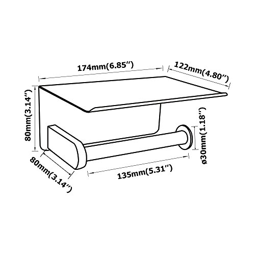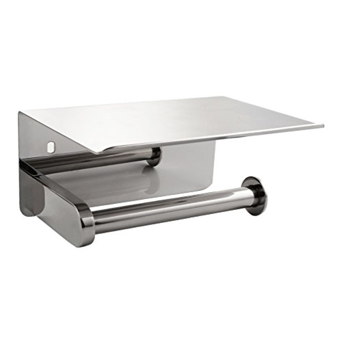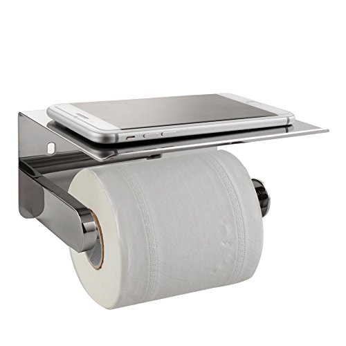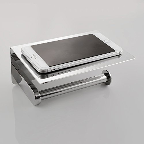 Toilet Paper Holder, Aomasi SUS304 Stainless Steel Bathroom Kitchen Paper Roll Hanger with Mobile Phone Storage Shelf Polished Chrome