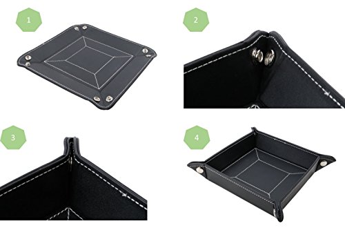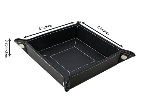 Decorebay Easy Pocket Dump Foldable Travel Leather Valet Tray (Black)