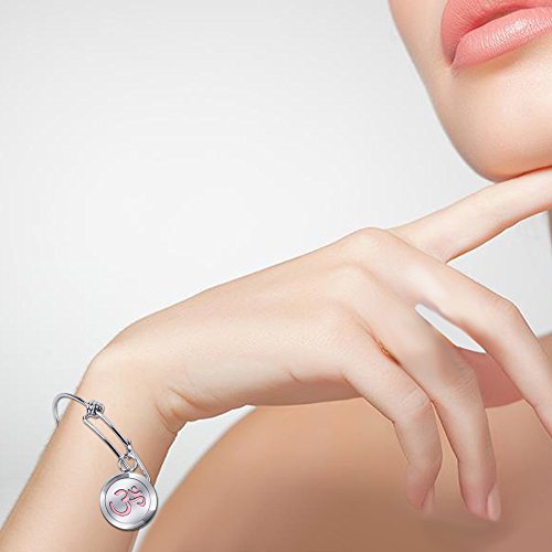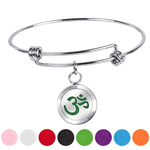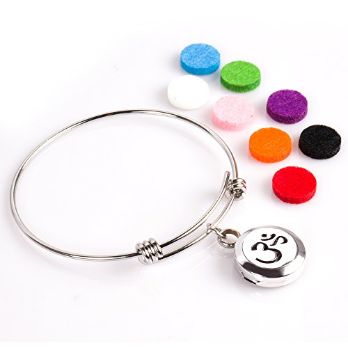 ROMANDA Stainless Steel Essential Oil and Perfume Diffuser Locket Bracelet, Aromatherapy Charm Locket Bangle with 8 PCS Color Pads (Yoga)