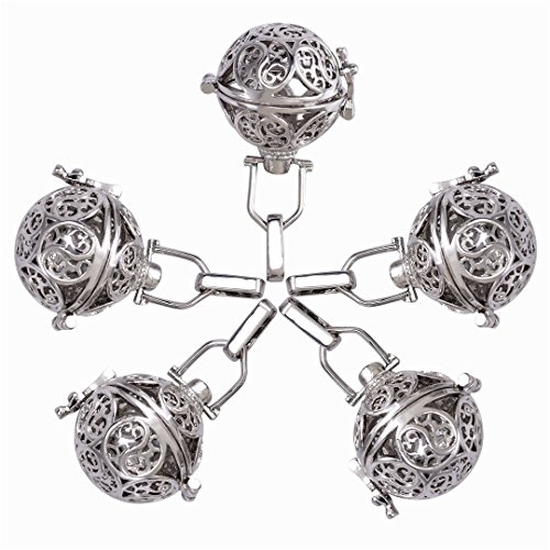 Yumei Jewelry 5 Pcs Rhodium Plated Diffuser Locket Aromatherapy Essential Oil Pendant Cage Locket