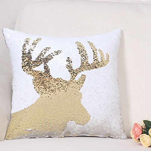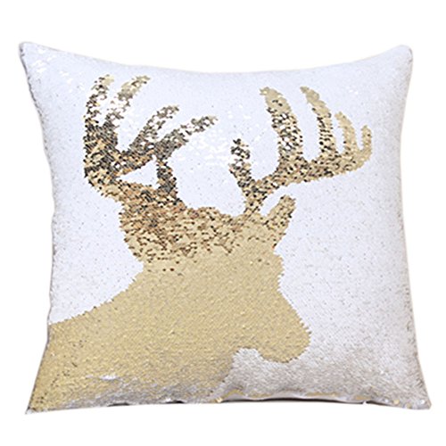 Sequin Decorative Pillowcase,SNUG STAR Christmas Cushion Cover for Bedroom/Sofa/Party (Gold and White)