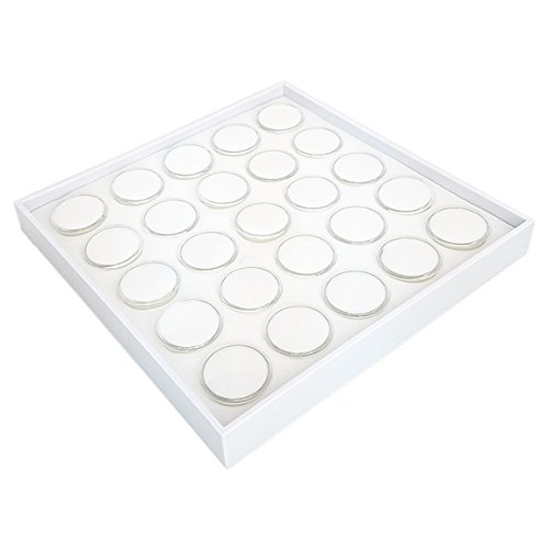 -. Binding : Kitchen -. Brand : j b t -. Color : White -. EAN : 0723905570545 -. Feature : This is a new set of 1 gemstone inserts / Each insert contains 25 removable clear plastic round jars / These will hold all of your loose stones, beads and coins / Each gem jar comes with a white insert pad inside and lid / The inside diameter of each gem jar measures approximately 1" (25 mm) -. IsAutographed : 0 -. Label : jbt -. Manufacturer : jbt -. ProductGroup : Home -. ProductTypeName : HOME -. Publisher : jbt -. Studio : jbt -. Title : 1 Gem Stone Jars Display Body Jewelry Storage Tray Case -. UPC : 723905570545