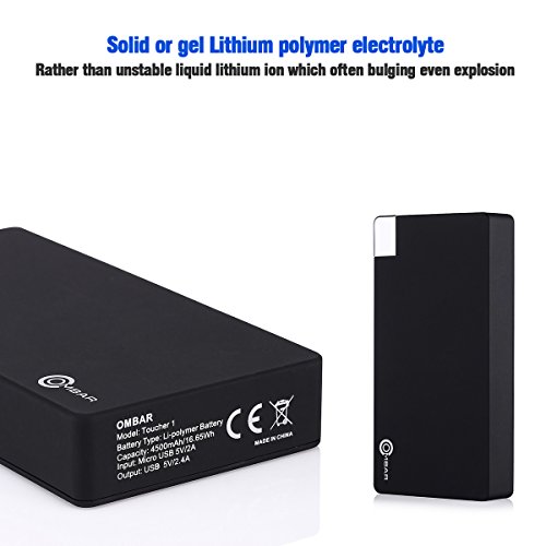 OMBAR Toucher1 4500mAh Portable Charger Power Bank for iPhone Samsung and Other Phones 5V 2.4A- Black