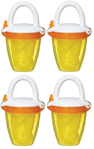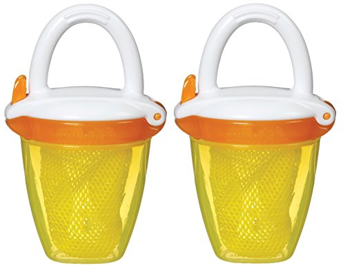 -. Binding : Baby Product -. Brand : Munchkin -. Color : Yellow/Pink -. Feature : Includes two BPA free feeders / Introduce fresh fruits and veggies to your baby with ease / Feeder helps reduce the risk of choking - only small pieces of digestible food get through / Simple and easy to use - place food in mesh bag and snap shut to secure / Great for travel - includes on-the-go cap with snap-tight closure -. Label : Munchkin -. Manufacturer : Munchkin -. ProductGroup : Baby Product -. ProductTypeName : BABY_PRODUCT -. Publisher : Munchkin -. Studio : Munchkin -. Title : Munchkin Deluxe Fresh Food Feeder, 2 Count