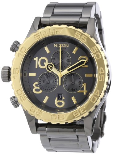 Nixon Watch 42 20 Mens Grey Dial Stainless Steel Case Quartz Movement, Case Size 42.25mm wide, custom 200 meter stainless steel with hardened mineral crystal, external rotating bezel with countdown timer, and screw crown at 9 O'clock positionFeature