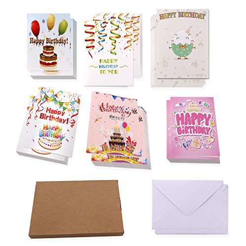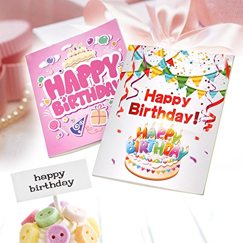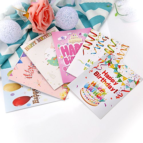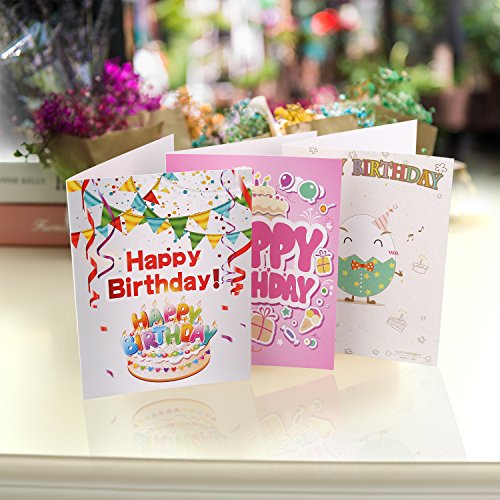 The folded cards display colorful designs on the front but the cards are blank inside,You can add your birthday greeting words as whatever you needed.