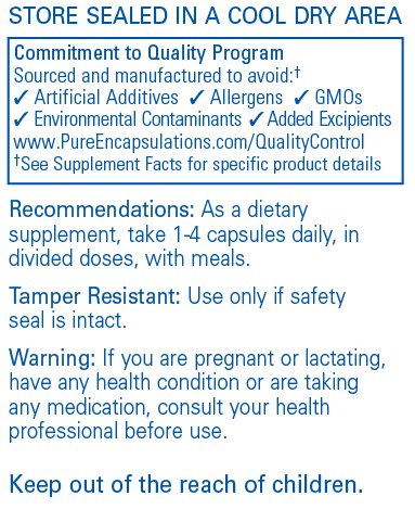 DOSAGE: Pure Encapsulations recommends 1-4 capsules daily, in divided doses, with meals.