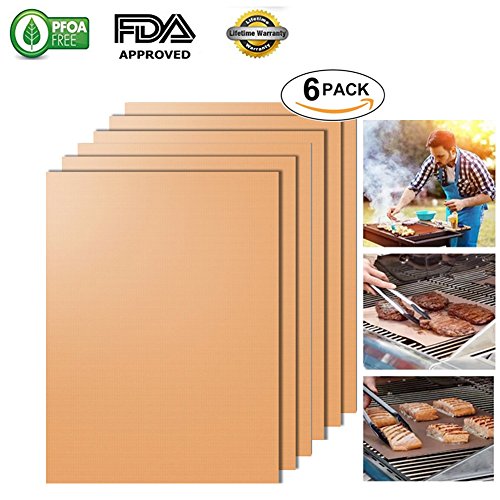 Copper BBQ Grill Mat, Non Stick Oven Liner Teflon Cooking Mats - Easy to Clean, Reusable, Durable, Heat Resistantand, Barbecue Sheets For Grilling Meat (Gold- set of 6)