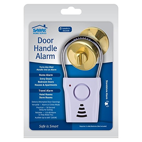 -. Title : SABRE Door Handle Alarm – 110dB Door Alarm for Home Security – Audible up to 600 Feet (185M) Away – Vibration-Triggered Security Alarm Sounds when Door Knob is Touched from Outside