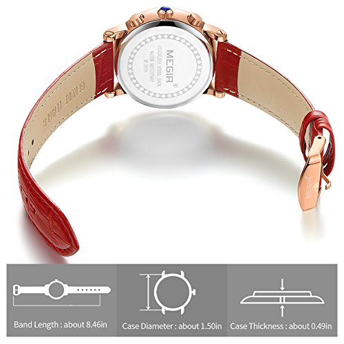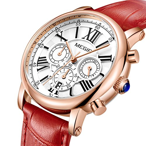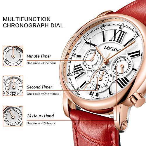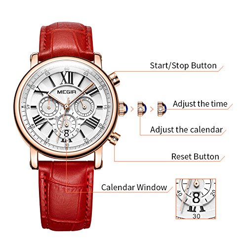 - Multifunction Small Dial - MEGIR women wristwatch, fashion chronograph functions for minute, hour, day, and calendar date function.Great for casual use, sport, work, business, office, parties, outdoor etc.
