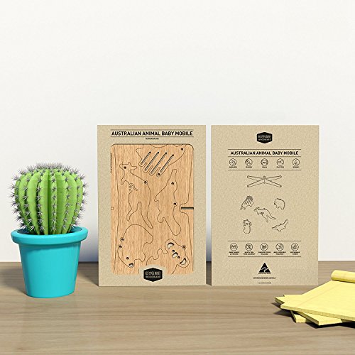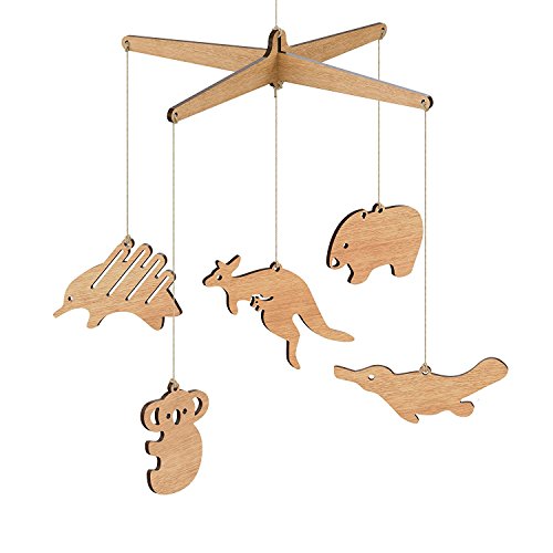 Wooden Australian Animal Nursery Baby Mobile - Tasmanian Oak / Flat pack (Kangaroo, Koala, Platypus, Wombat, Echidna)