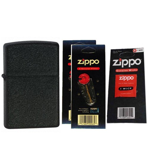 -. Title : Zippo 236 Classic Black Crackle Windproof Lighter with Two Flint Card and One Wick Card