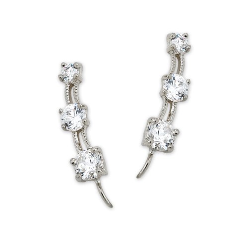 -. Feature : Ridged sterling silver ear pins featuring three faceted cubic zirconia / Wear as a pierced earring or simply slide on the ear as a non-pierced earring. / Imported