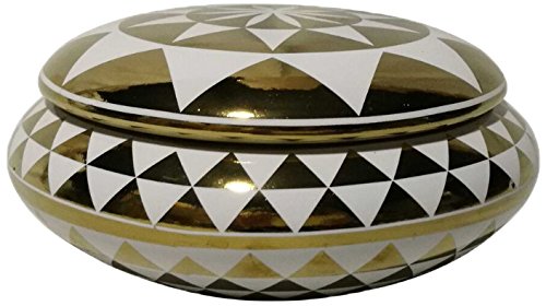 Benzara Ceramic with Triangle Design Covered Jar, White/Gold