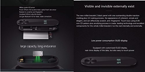 FEATURES: 0.42inch OLED display screen with touchpad Support Heart rate monitor Passometer,Fitness Tracker,Sleep Tracker,Message Reminder,Call Reminder Water resistant (IP67) 20-day standby power Sleep-cycle smart alarm With a Dialog II 4.0 and above versions; For iphone 4s/5/5s/6/plus ios 7.0 and above Unlock your Mi phone without a password Stylish band options (incl. wrap-around and leatherFeature