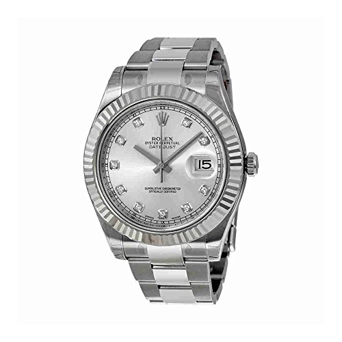 -. Title : Datejust II Silver Diamond Dial 18k White Gold Fluted Bezel Oyster Bracelet Mens Watch 116334SDO