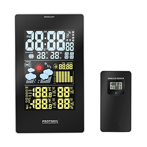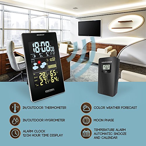 This is the color digital weather station with the following functions: weather forecast; radio control clock; thermometer, hygrometer and barometer function; date and weekday display; calendar; two daily alarms; automatic snooze; lunar phase indicator.