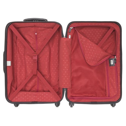 • Carry-on size fits in overhead of most U.S. Domestic airlines. Fully lined interior offers two packing compartments with tie-down straps on one side and a zippered divider on the other side to minimize shifting of content.