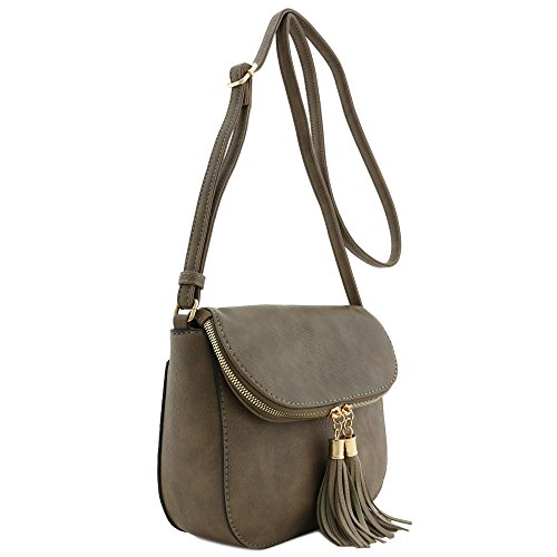 -. Title : Tassel Accent Flapover Crossbody Bag