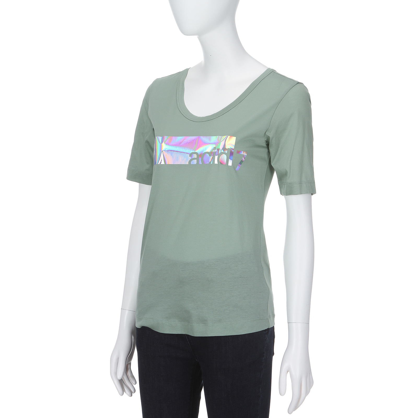 솔리드 컬러에 홀로그램 배색을 적용하여 유니크한 멋을 연출하는 반팔 티셔츠입니다. 라운드넥으로 깔끔하며 면 소재로 쾌적하고 신축성이 우수하여 편안한 착장감을 전해줍니다. 다양한 하의와 코디하여 캐주얼한 스타일링을 완성할 수 있습니다.