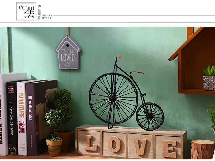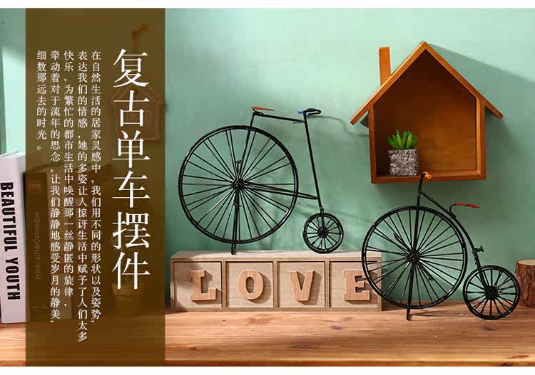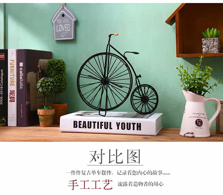 复古铁艺自行车客厅装饰品摆件创意家居橱窗办公桌桌面模型小摆设