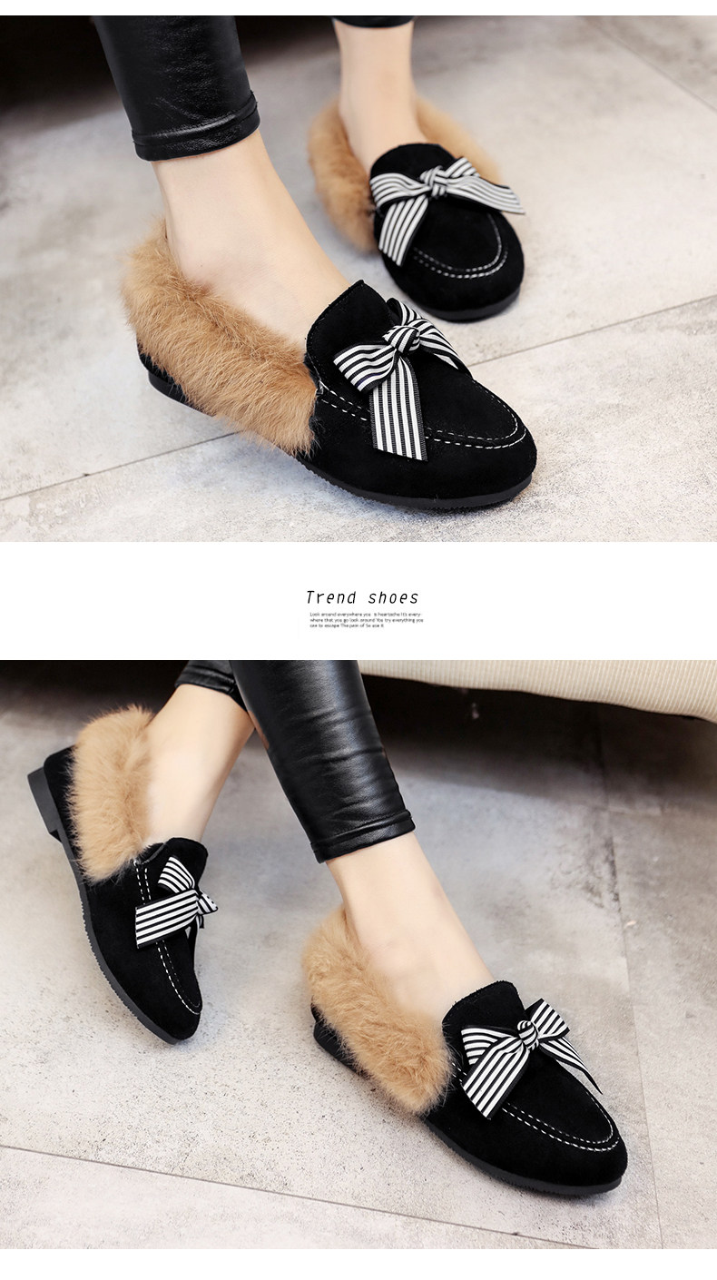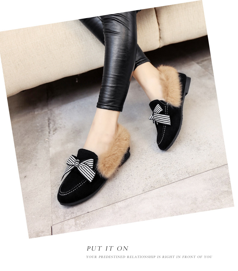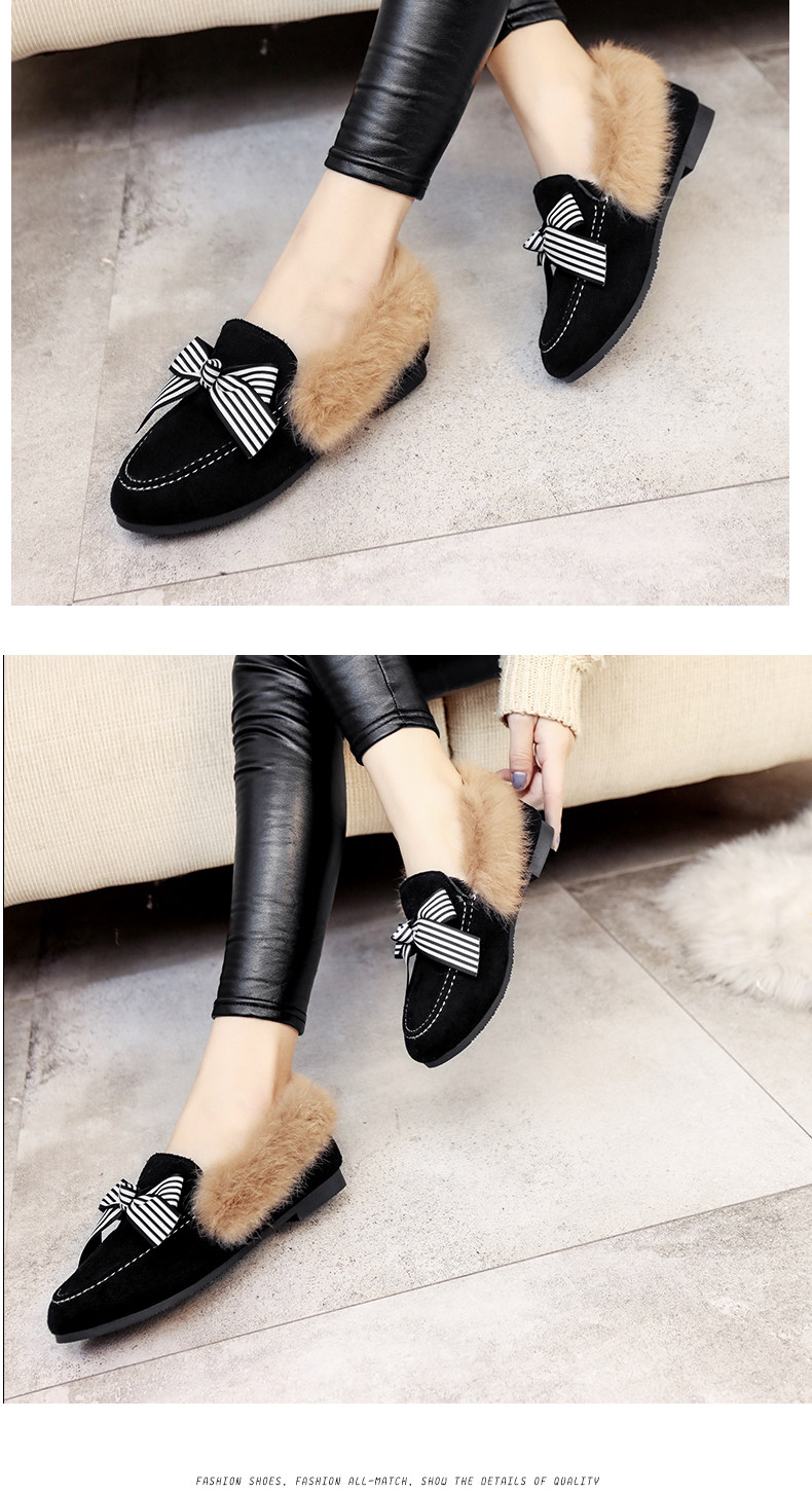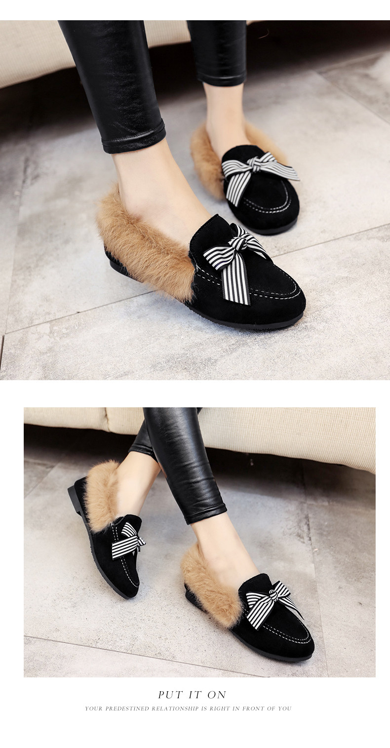 毛毛鞋女冬季新款平底豆豆鞋平跟休闲鞋百搭学生蝴蝶结女鞋子