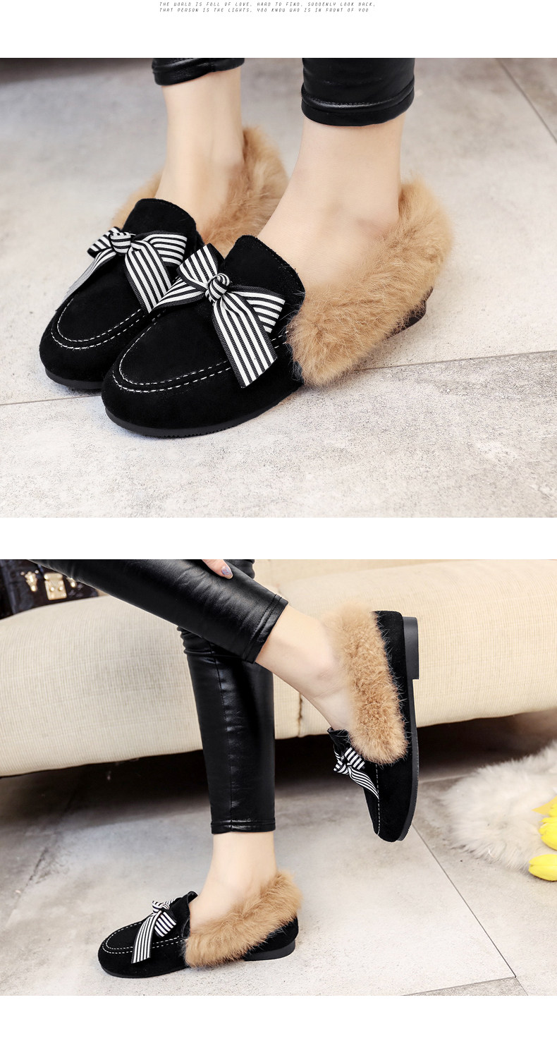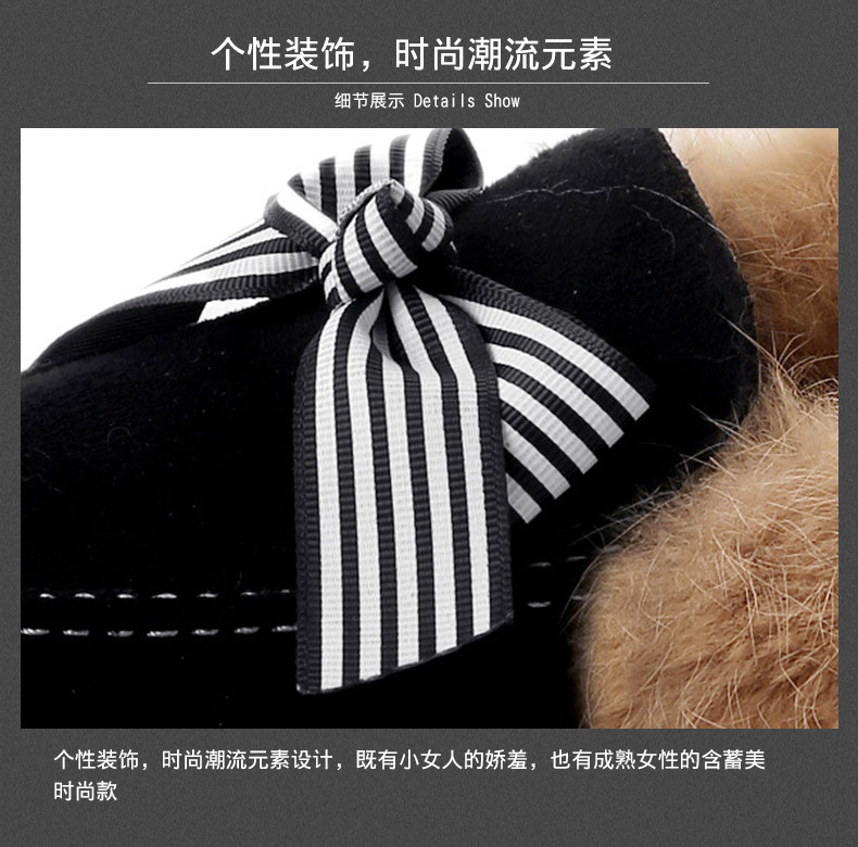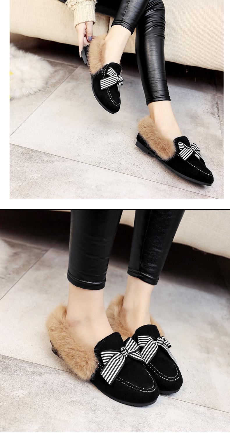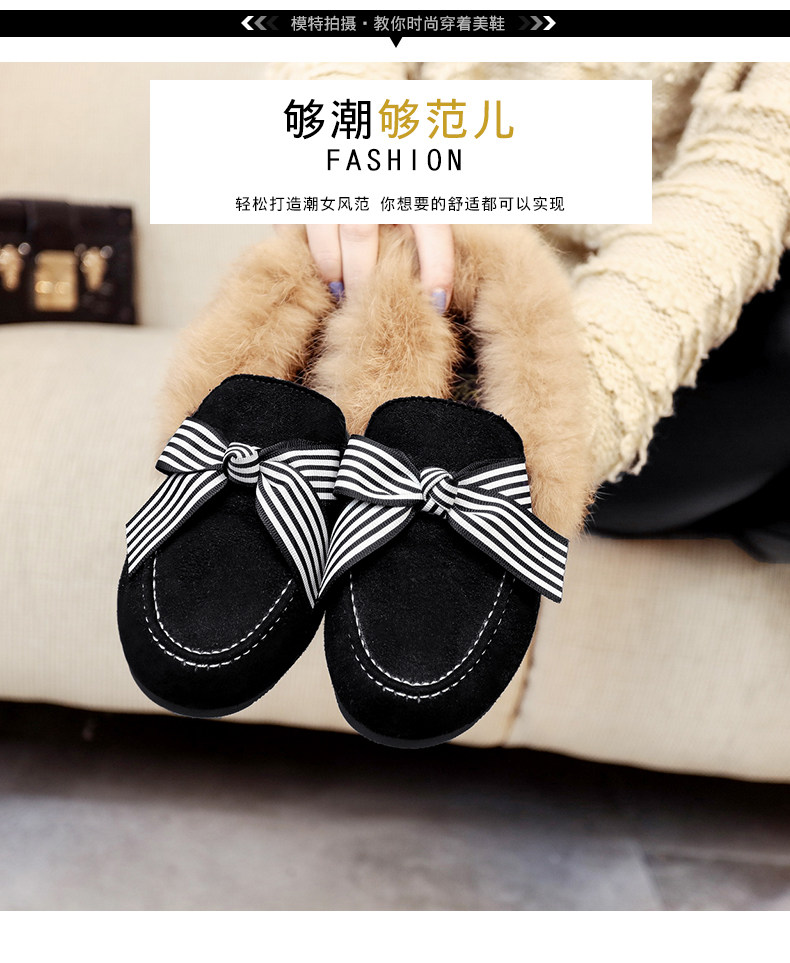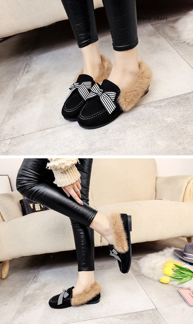 毛毛鞋女冬季新款平底豆豆鞋平跟休闲鞋百搭学生蝴蝶结女鞋子