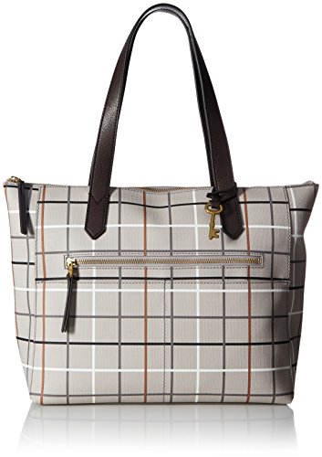 -. Title : Fossil Fiona Tote Grey Grid Print