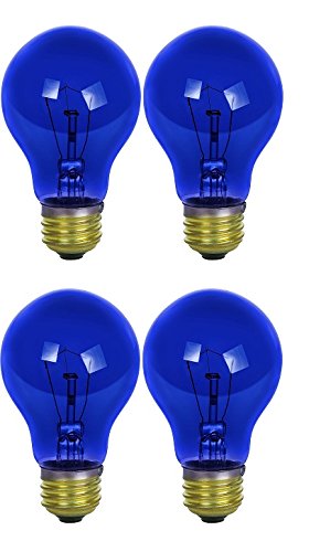 Sunlite 25A/TB/CD2 Incandescent 25-Watt, Medium Based, A19 Colored Bulb, Transparent Blue, (4 Pack)