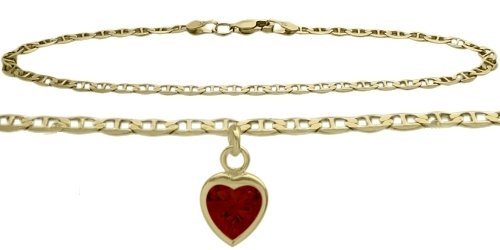 -. Title : 14K Yellow Gold Mariner Anklet with Genuine Garnet Heart Charm