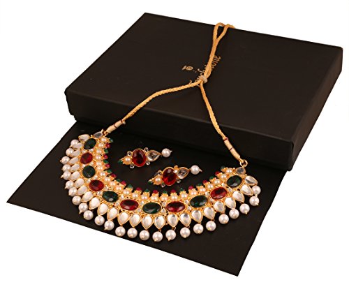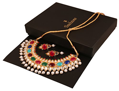 -. Title : Touchstone Indian bollywood Kundan look b faux quartz ruby jewelry necklace in antique gold tone for women