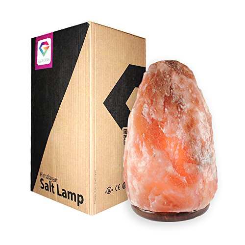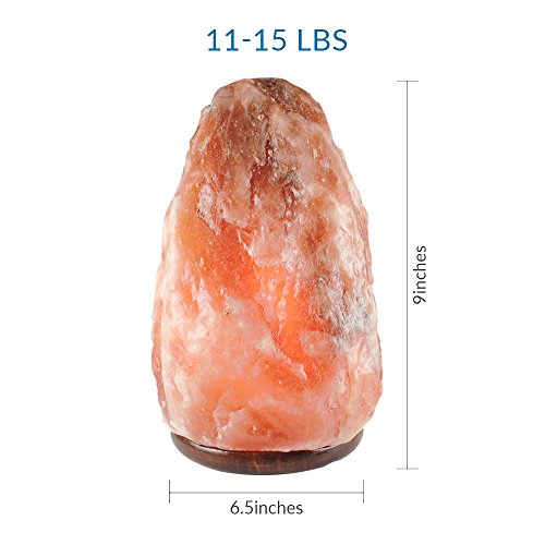 SALT GEMS Natural Himalayan Salt Lamp (8-9 Inch, 11-15 lbs) Air Purifier - Hand Carved Natural Shape Salt Rock Lamp With Elegant Wood Base, 15 W Bulb and Dimmer Cord Included