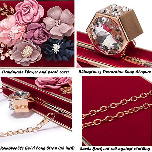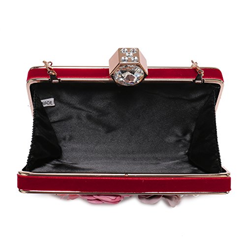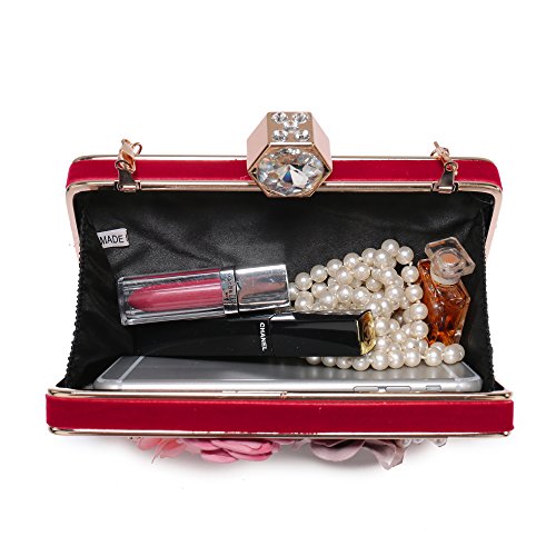 Product Description The glamorous handmade evening party clutch features allover sparkling crystals on the front of this chic shaped clutch and has metal frame construction with clasp on the top. It features magnetic hasp closure and detachable chain which offers versatile carrying options as handbag, clutch, a shoulder bag or a cross-body bag. The crystal handbag is so royal, noble and brilliant that it will be a perfect status symbol and a bold gift for femininity.