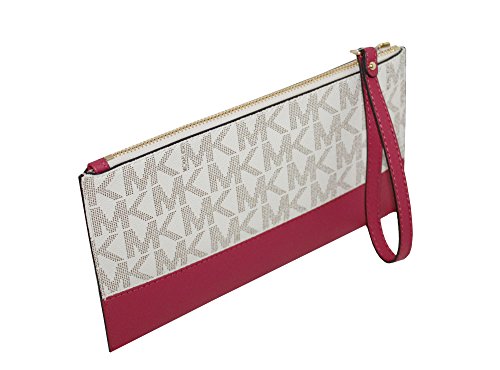 Large leather clutch with top zip. Interior: 1 main compartment. 1 medium side pocket. multiply card slots.Exterior: beautiful design ,Michael Kors front logo. Wrist strap. Wrist leather strap. New style 2018. Authentic.MEASUREMENTS : 9"X4.5"
