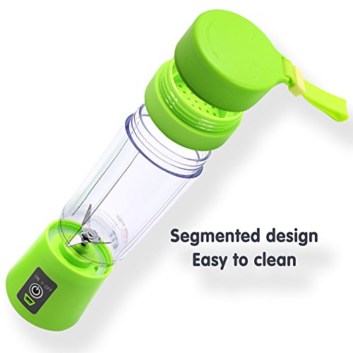 Notice: 1. The juicer has to be charged for 3 hours with the USB cable before using 2. Do not use the juicer when it is charging 2. If the motor seems to be sruggling at a low speed, please add some water or milk 3.Meat, beans, nuts, ice cubes or other hard food are not recommended to grind with 4.When clean the product, please make sure the power switch is off, then clean the cup cover/body with bresh, and must prevent the charging pot from water while cleaning 5.The idling time is 5S, then red light flicker; Max working time 90S will auto stop, then light green light flicker, you can reset the switch and re-start the machine to continue use the blender. Please not over use the machine, incase the electronic components or motor over heat, affect product lifetime. 0