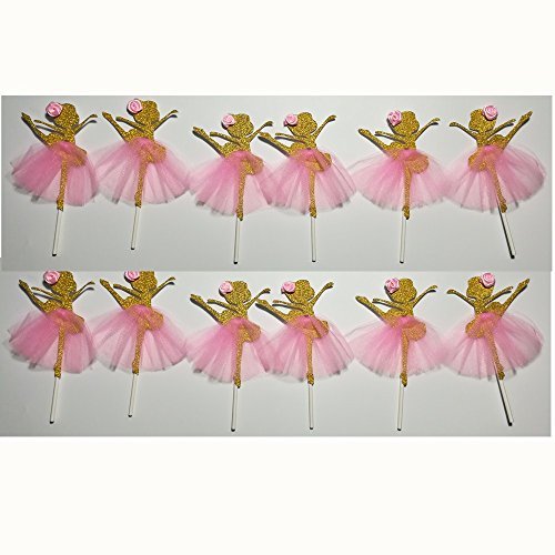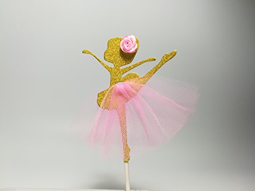 LASLU Cute Ballet Dancer Girls Fairy Peri Dessert Muffin Cupcake Toppers for Picnic Wedding Baby Shower Birthday Party Server(Gold and Pink)