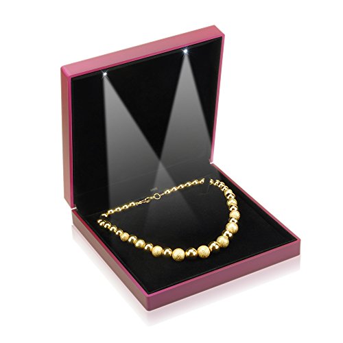 Geff House Jewelry Large Necklace Presentation Display Gift Box with LED Light (Purple)