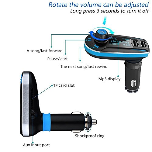 FM Transmitter, Webat Handsfree Wireless Bluetooth Car Kit Adapter Calling/MP3 Player Dual USB Ports for Cellphones Power Battery Charge-Blue
