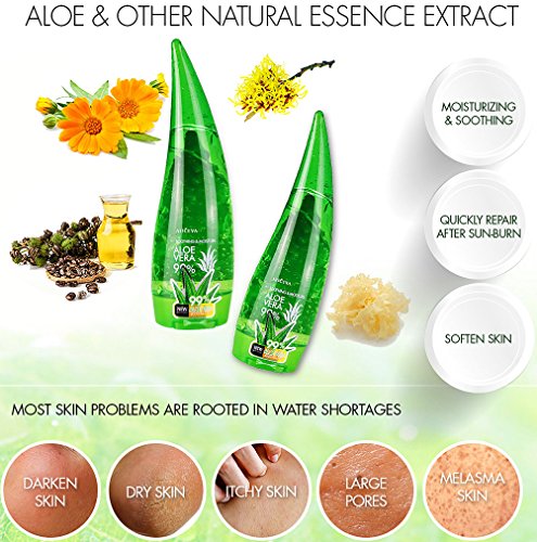 ★HEALS & SOOTHES SKIN - With anti-inflammatory and cooling properties, Our Aloe Vera gel is the perfect remedy for sunburned skin. It provides a protective layer to the skin which helps retain moisture. Aloe is also rich in antioxidants and minerals which can help speed healing.