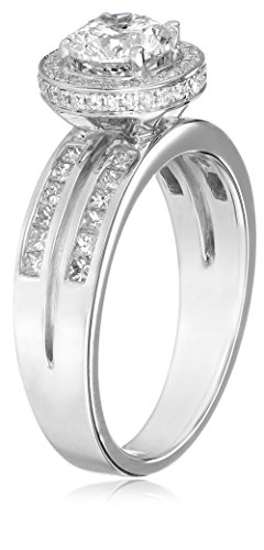 The Kobelli Round Brilliant-Cut Diamond Engagement Ring radiates beauty. This diamond engagement ring is created from high-polished 14k white gold and will likely stir up talk all around the water cooler. This engagement ring features an elegant double band with a row of round-cut diamonds on each side of the center setting. The stunning round-cut center stone shines brilliantly in any light and is surrounded by smaller round-cut diamonds for an extra bit of dazzle. This ring features a total weight of 1-3/4 carat and measures 3.27 millimeters wide and .38 inch long.Feature