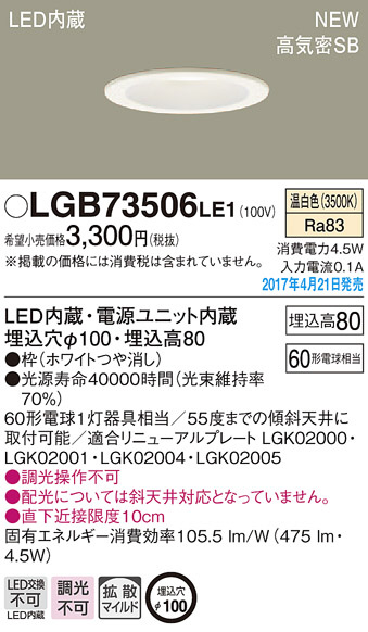 ●寸法(mm):埋込穴φ100・埋込高80