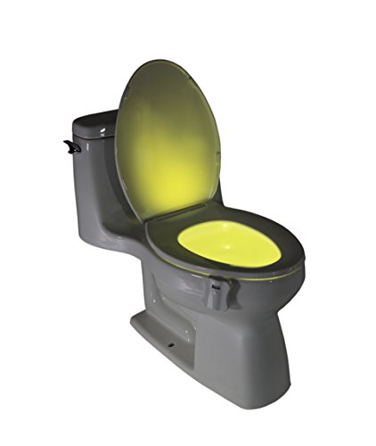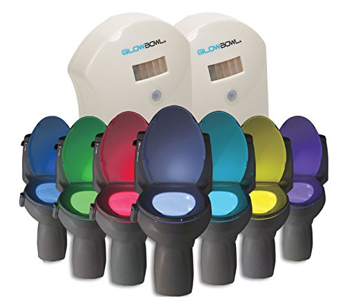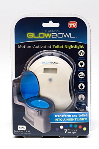 The GlowBowl is the Highest Quality Toilet Light on the market. GlowBowl will transform ANY toilet into a nightlight in seconds. No more missing your target or stumbling around in the dark - The GlowBowl is motion-activated and light-sensitive. GlowBowl solves all your nighttime bathroom problems and more. With the touch of a button, you can choose from seven different colors: blue, purple, aqua, yellow, red, white or green. With The GlowBowl, you no longer need to worry about turning on the blinding light again. The Glowbowl's dimming feature allows you to further customize it by selecting the level of brightness you desire. From a nice subtle glow to a brightness that radiates beyond the bowl! Great Gift idea for the person that has everything. Do not be fooled by "like" products that use ineffective 2-way sticky tape or suction cups that do not stay in place. Our patented design allows you to create a snug fit on any toilet in seconds that will stay in place forever. GlowBowl is also Ultra-Water Resistant and can be cleaned with most household cleaners!Feature
