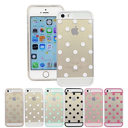 iPhone 5S Case, Dorami Bubble Series Clear Back+Rosy Red Polka Dots Case Protective Case Bumper Case [Ultra Thin][Light Weight][Perfect Fit] Soft TPU Back Cover for iPhone 5/5S (Rosy Red)