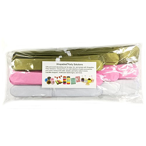 - Set includes: Pom poms: 2 x 8 inch pink, 2 x 10 inch pink, 2 x 12 inch pink, 2 x 8 inch gold, 2 x 10 inch gold, 2 x 12 inch gold, 2 x 8 inch white, 2 x 10 inch white, 2 x 12 inch white